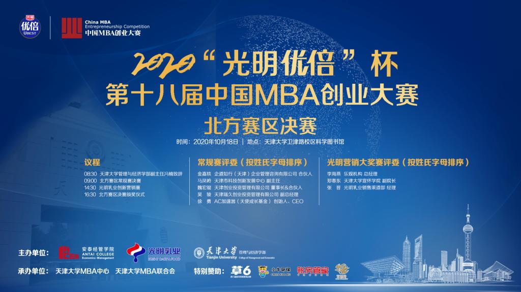 天津大学管理与经济学部连续三年承办“光明优倍”杯中国MBA创业大赛北方赛区。2020“光明优倍”杯第十八届中国MBA创业大赛北方赛区邀请了西北、东北、华北(包含北京、天津)地区的108所院校参与,共72个项目参赛,最终天津大学、中国人民大学、西安交通大学、大连理工大学等12所院校共计16支参赛队伍将在本次北方赛区决赛中角逐全国总决赛5个晋级名额。
