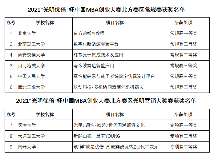 6月20日,2021“光明优倍”杯第十九届中国MBA创业大赛北方赛区决赛在天津大学圆满落幕,经过紧张激烈的角逐,最终北京大学、西安交通大学、北京理工大学、河北地质大学、中国人民大学以及天津大学将代表北方赛区参加在上海交通大学举行的全国总决赛。
