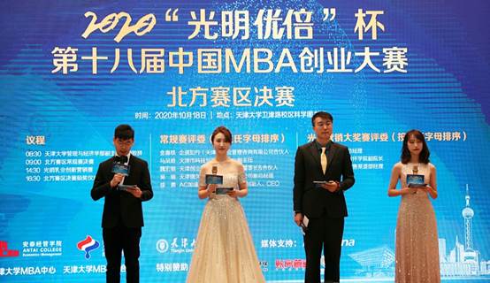 10月18日,2020“光明优倍”杯第十八届中国MBA创业大赛北方赛区决赛在天津大学科学图书馆圆满落幕,经过激烈的角逐,最终来自北京理工大学的矿山安全预判-地音监测系统项目,天津大学小牛智能回收项目,兰州交通大学媒老板来了-新媒体宣介中华优秀传统文化项目,西安交通大学油气田的“智能大脑”项目,以及天津大学光明优倍营销整合方案-优倍焕(唤)新(心)计划项目将代表北方赛区参加11月21-22日在上海交通大学举行的全国总决赛。